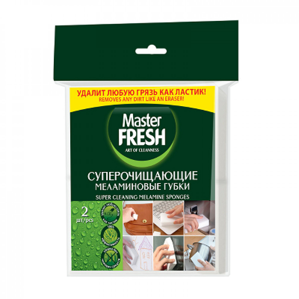 Меламиновые губки Master FRESH подходят для уборки любых видов поверхностей, особенно пластиковых: эл чайник, окна, микроволновая печь, кухонный гарнитур и т д