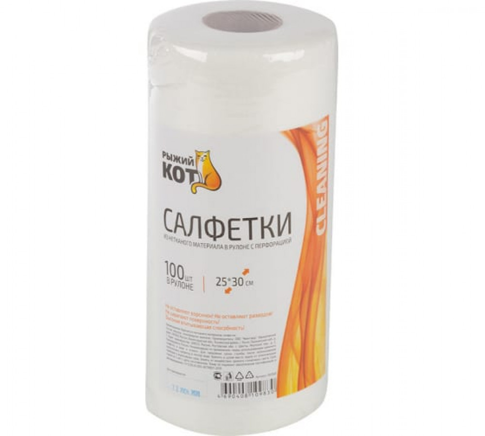 Салфетки рулон `РЫЖИЙ КОТ` (100 шт) 25x30 вискоза с перфорацией