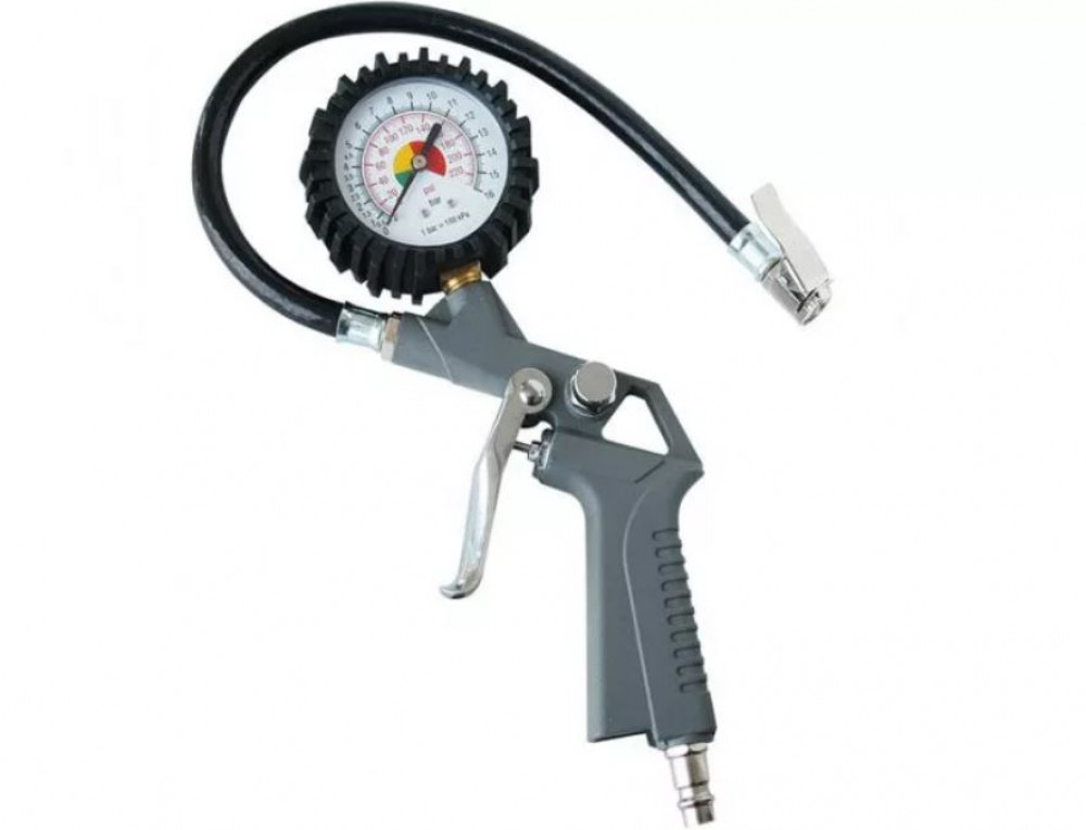 Пистолет для накачивания шин с манометром 16 АТМ быстросъемное соединение - пистолет со встроенным манометром используется для накачки и регулировки давления в автомобильных шинах Металлический прочный корпус и защитный резиновый чехол манометра улучшают устойчивость к повреждениям, обеспечивая его целостность при падении или в процессе использования Патрон изготовлен из легкого цинкового сплава, поверхность пистолета обработана чпециальным покрытием, которое защищает от коррозии и окисления Гибкий рзиновый шланг облегчает применение, позволяя работать в труднодоступных местах