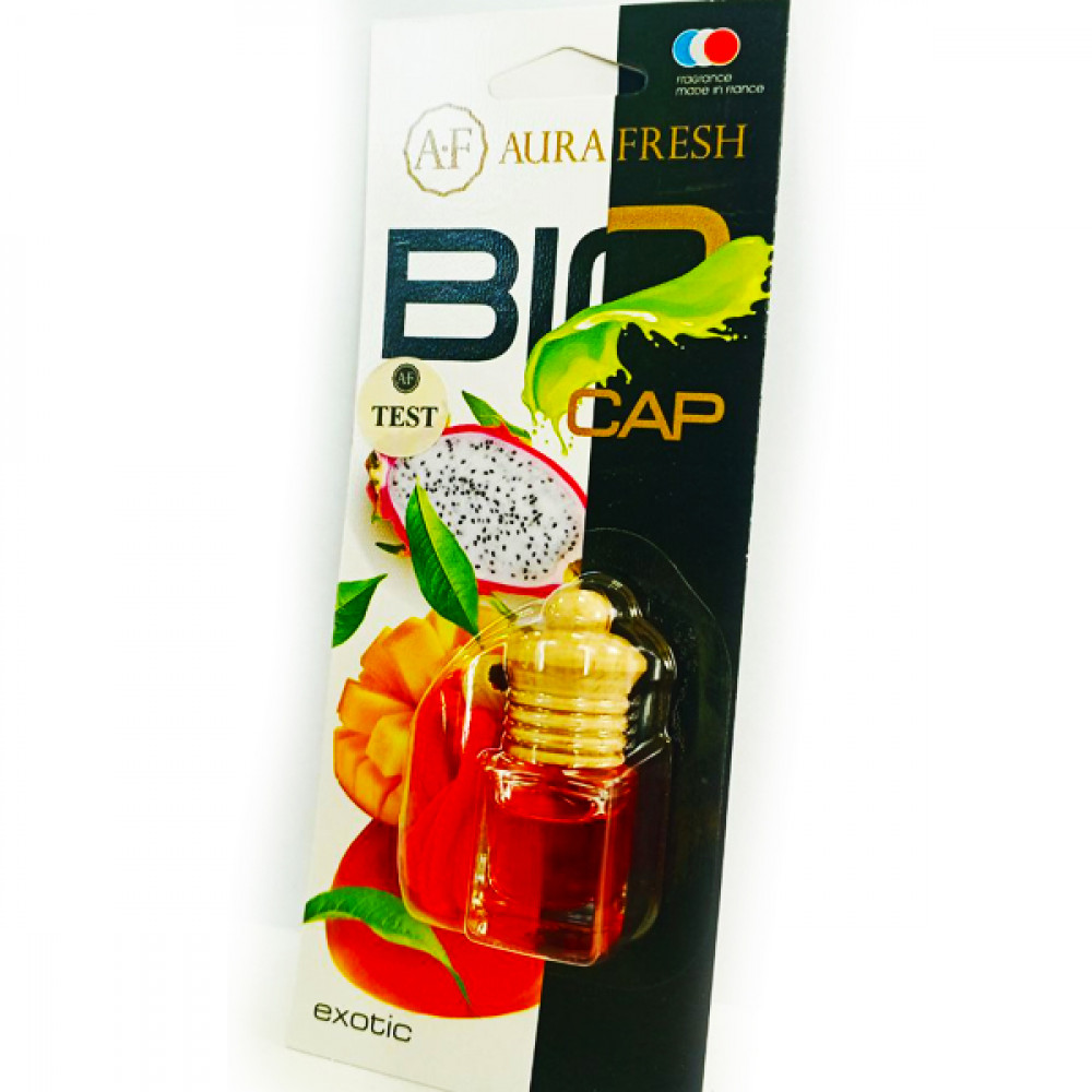 AURA FRESH BIO CAP – ароматизатор воздуха жидкий во флаконе Главными преимуществами автомобильного ароматизатора AURA FRESH BIO CAP являются равномерная интенсивность ароматизации салона автомобиля в любое время года, многообразие ароматов и оригинальный внешний вид