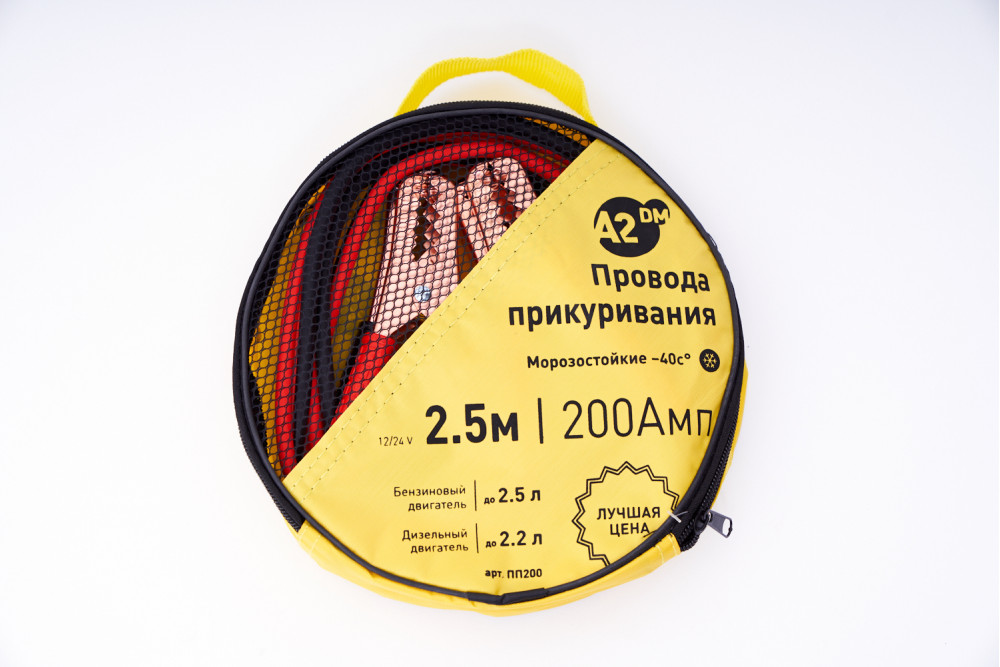 А2ДМ Провода прикуривания - это: надежные крокодилы, качественная, морозоустойчивая изоляция из термопласта, толстые жилы для лучшей электропроводимости, а также качественная сумка на молнии для хранения