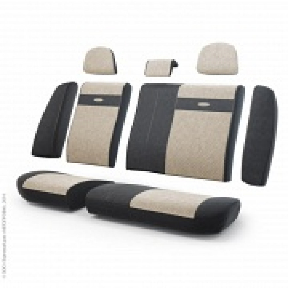Модульные чехлы TRS-002 для заднего ряда сшиты из велюра с классической фактурой и дополнены велюровыми вставками бежевого цвета с перфорацией Универсальная конструкция подходит для большинства автомобильных сидений Кресла и подлокотники после надевания чехлов можно складывать Решение подойдет для любого салона, включая автомобили представительского класса