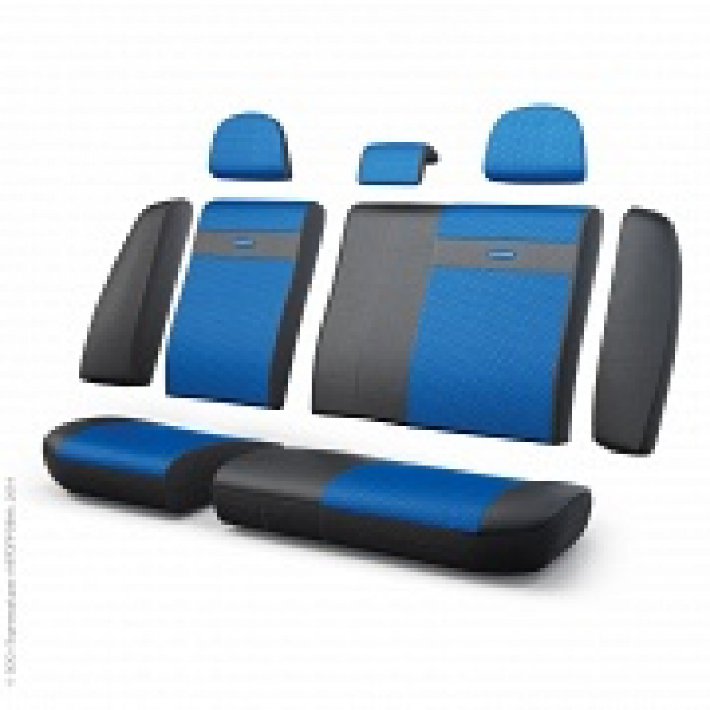 Чехлы на сиденье "Трансформер" TRS-002G - комплект из 11 изделий, предназначенный для установки на автомобильные сидения заднего ряда Он включает 3 небольших чехла, предназначенных для размещения на подголовниках заднего сидения, 2 чехла для спинок и 2 чехла на нижние подушки сидений Черно-синие чехлы удерживаются на сидениях при помощи застежек-молний и липучек и являются универсальными, подходя для заднего ряда сидений разных моделей авто