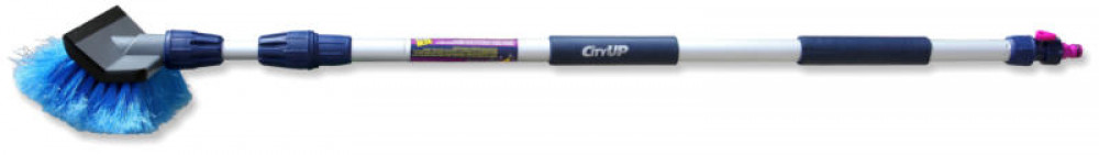 2-х секционная щетка с краном для воды и резиновым водосгоном профессионального уровня Имеет усиленную телескопическую рукоять Мягкий широкий водосгон 20 см легко убирает воду с больших поверхностей остекления Высокоупругая распушенная щетина удерживает большое количество воды и пены