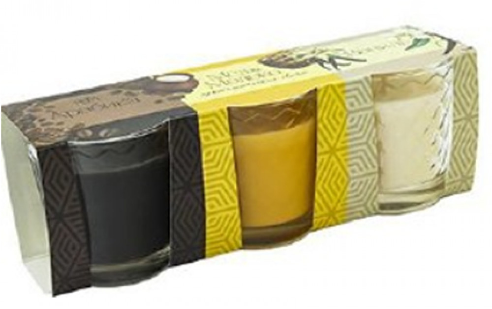 Набор свечей в стаканах 3шт Ваниль, Молоко-Мёд, Арабика